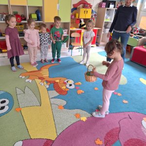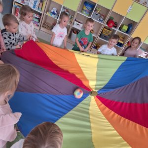 W dniu 03.10 ( piątek) odbyło się spotkanie dzieci z gr. I „Pszczółki” i gr. II „Żabki” pod hasłem ,,Witamy w naszym przedszkolu Maluszki”. Dzieci uczestniczyły w zabawach integracyjnych, z wykorzystaniem chusty animacyjnej, przy wesołej muzyce. Spotkanie było pełne radości i śmiechu. Na zakończenie dzieci wymieniły się drobnymi upominkami, co sprawiło, że dzień ten był jeszcze bardziej wyjątkowy.