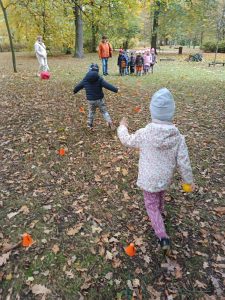 23 października 2025 r. dzieci z grupy II „Żabki” wybrały się na jesienny spacer do Parku Grabiszyńskiego. Podczas wyjścia przedszkolaki obserwowały zmiany zachodzące w przyrodzie jesienią oraz uczestniczyły w wesołych zabawach ruchowych na świeżym powietrzu. Wyjście odbyło się w ramach projektu „Park Grabiszyński w czterech porach roku – II edycja sportowa”. To był dzień pełen ruchu, uśmiechu i jesiennych wrażeń!