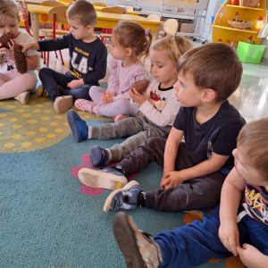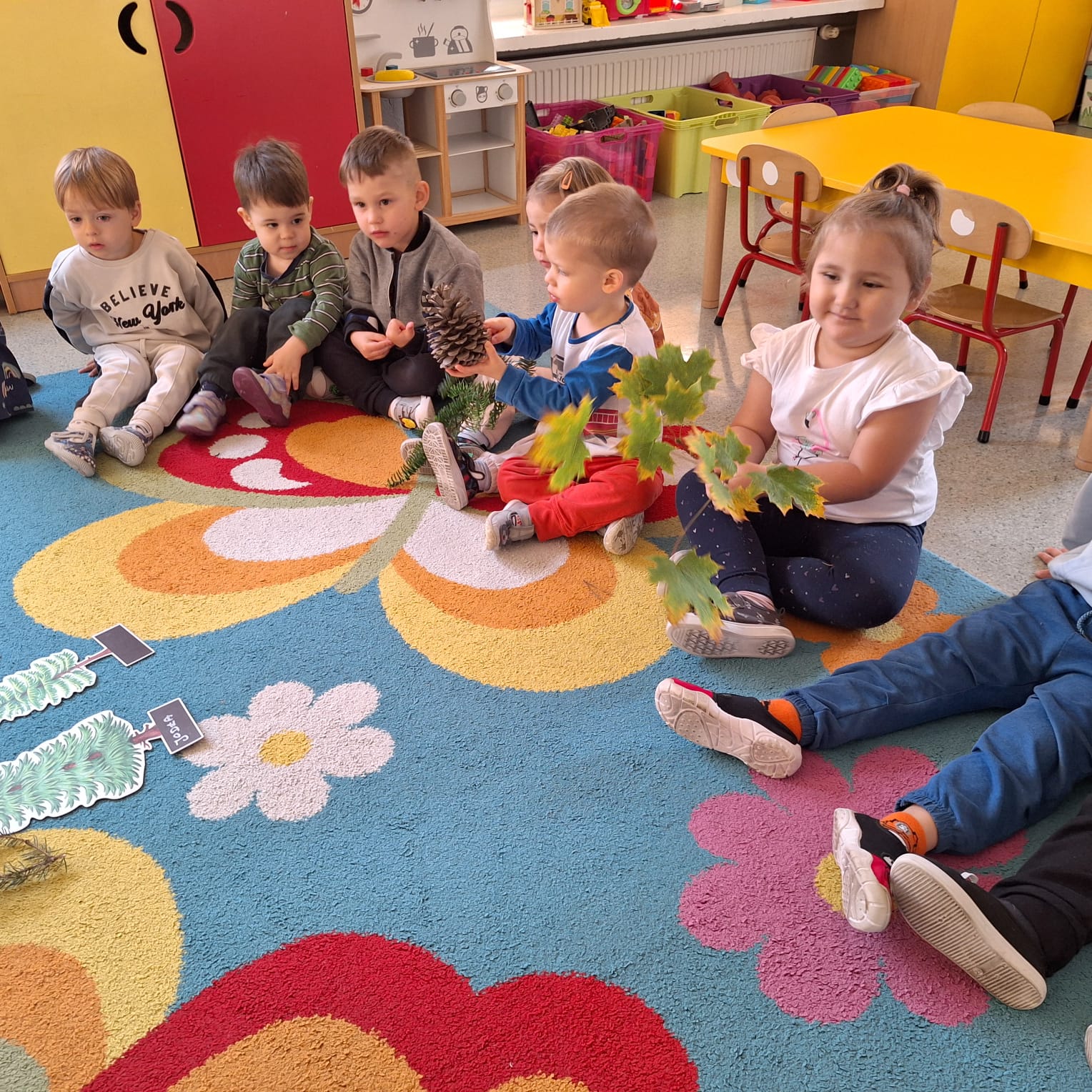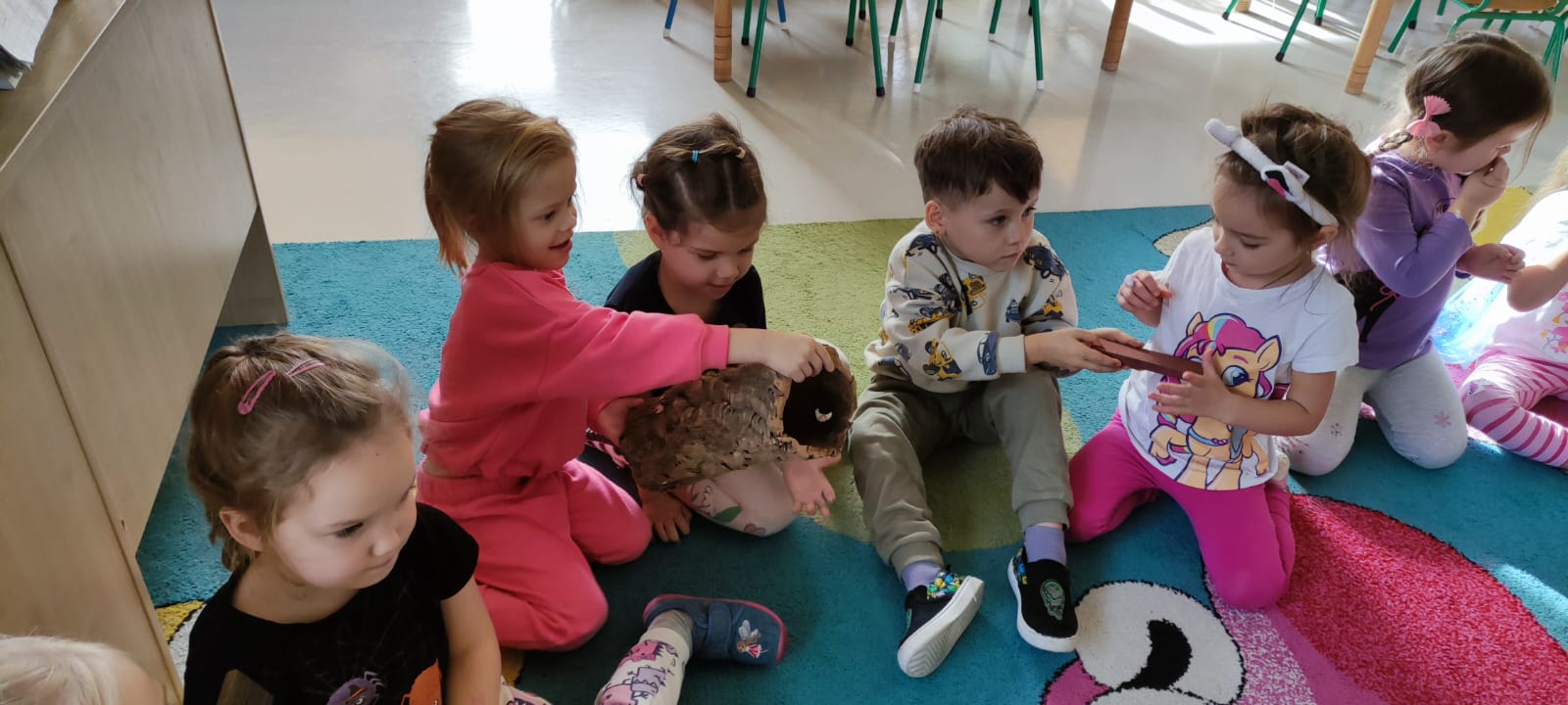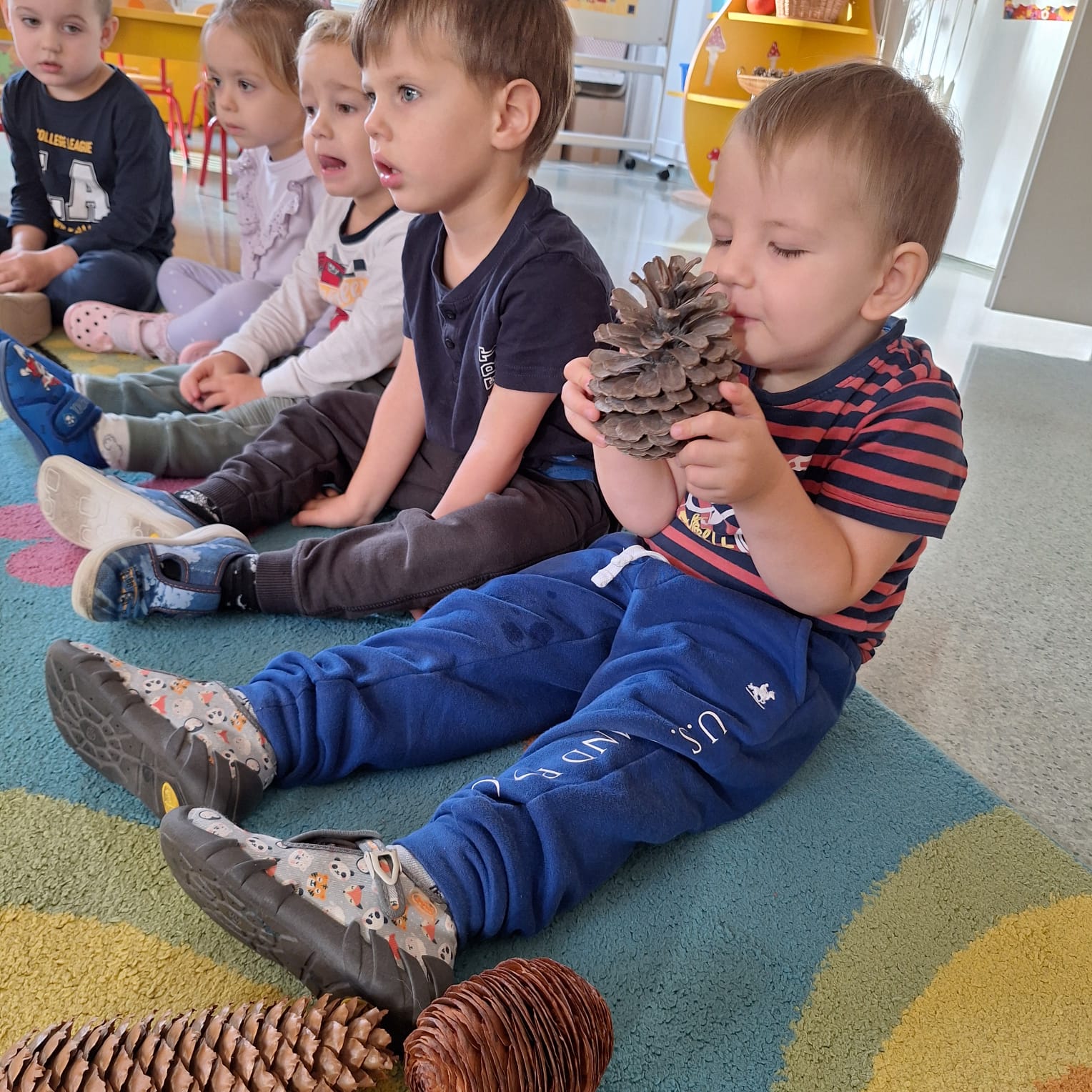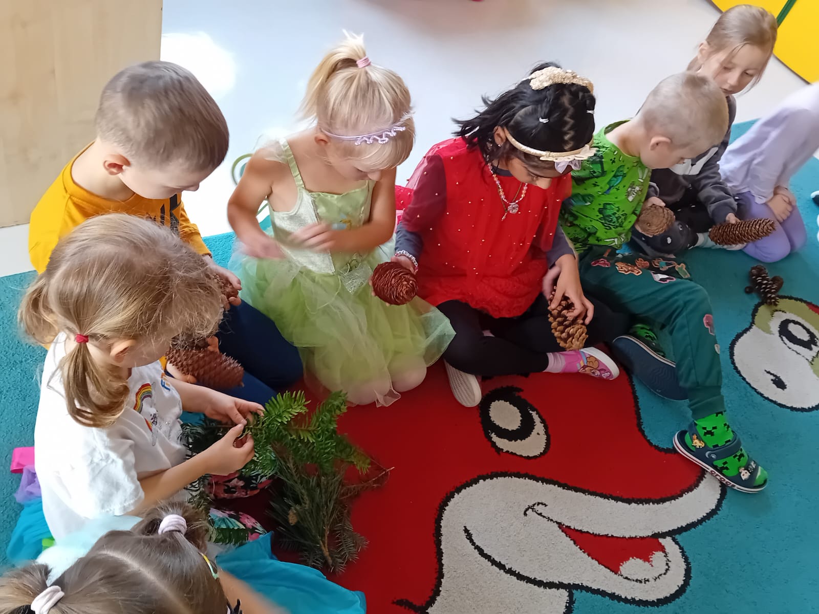 05.11.25 r. Dzieci z wszystkich grup przedszkolnych brały udział w ciekawych warsztatach przyrodniczych , pt. „Między nami drzewami – poznajemy bliżej nasze drzewa” . Przedszkolaki dowiedziały się czym różnią się drzewa iglaste od liściastych, jak są zbudowane, z czego wyrastają i jakie dają owoce. Przy pomocy zmysłów dotyku, węchu i wzroku poznały: drzewa, szyszki i korę oraz budowę drzewa od środka, nauczyły się również sposobu liczenia wieku drzew. Dzieci zwiększyły swoją wiedzę i świadomość na temat tego, jak ważne i potrzebne są drzewa dla ludzi i zwierząt.