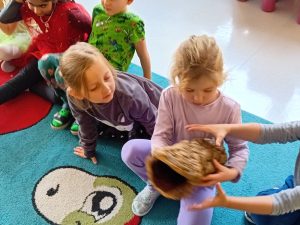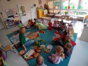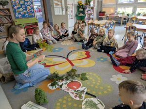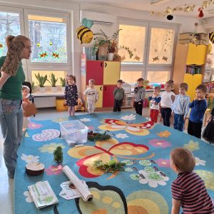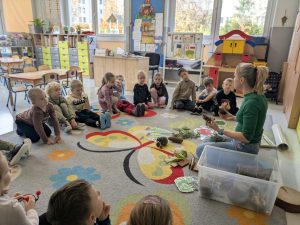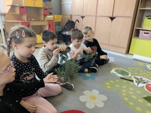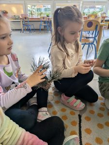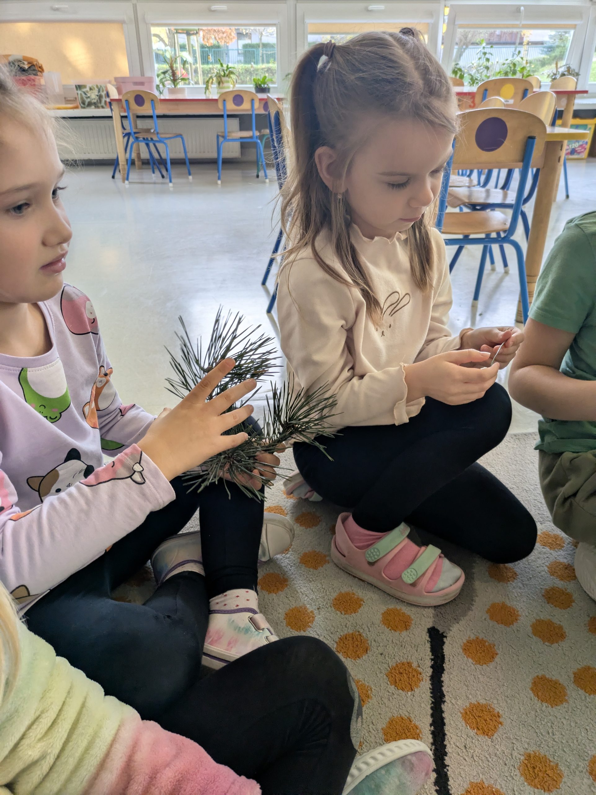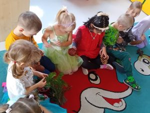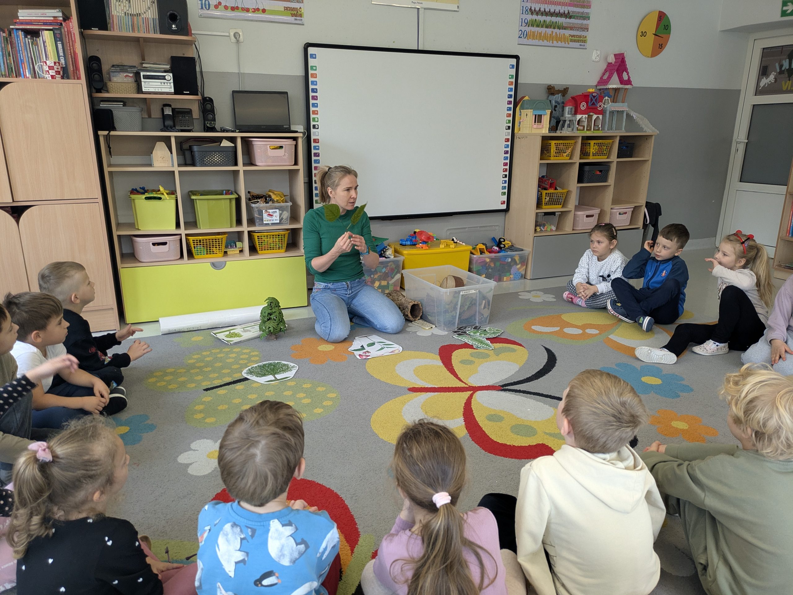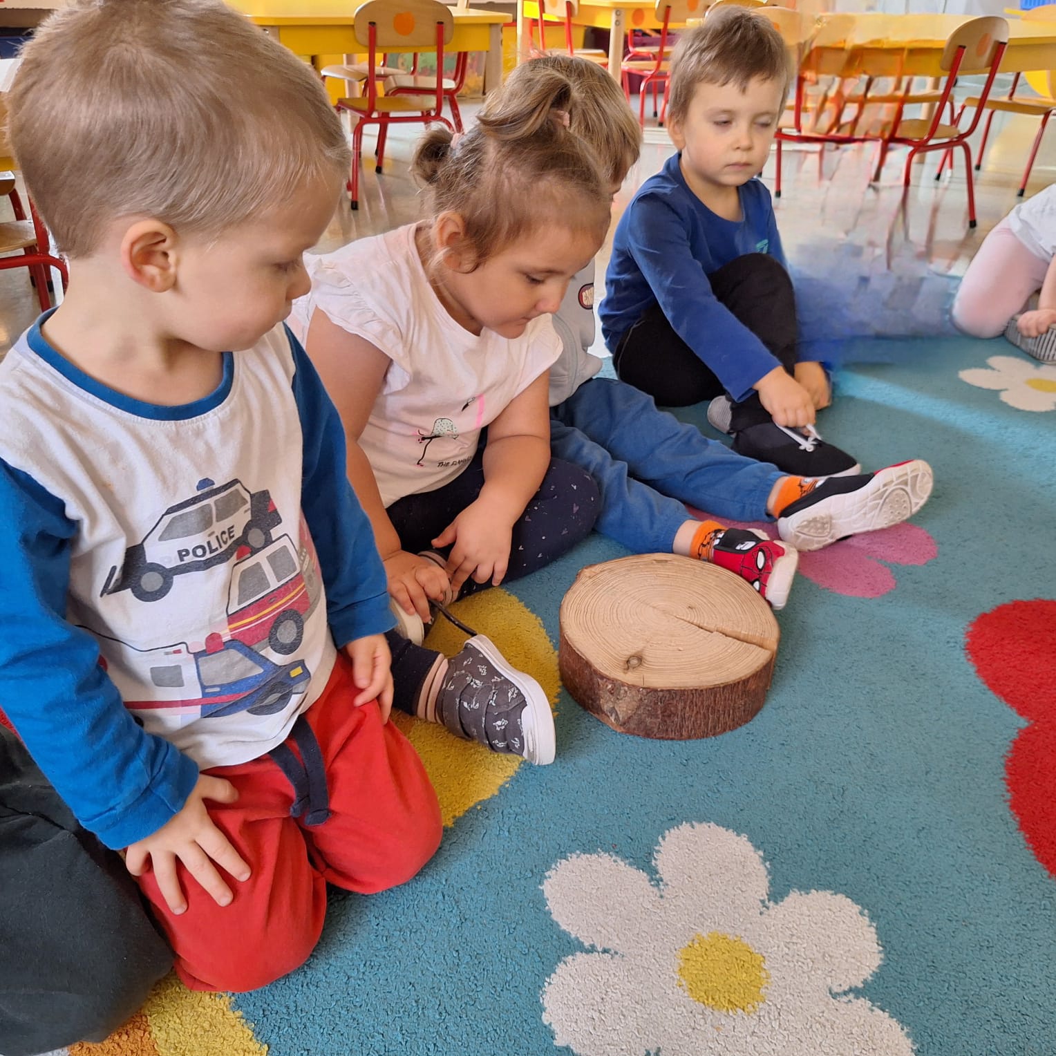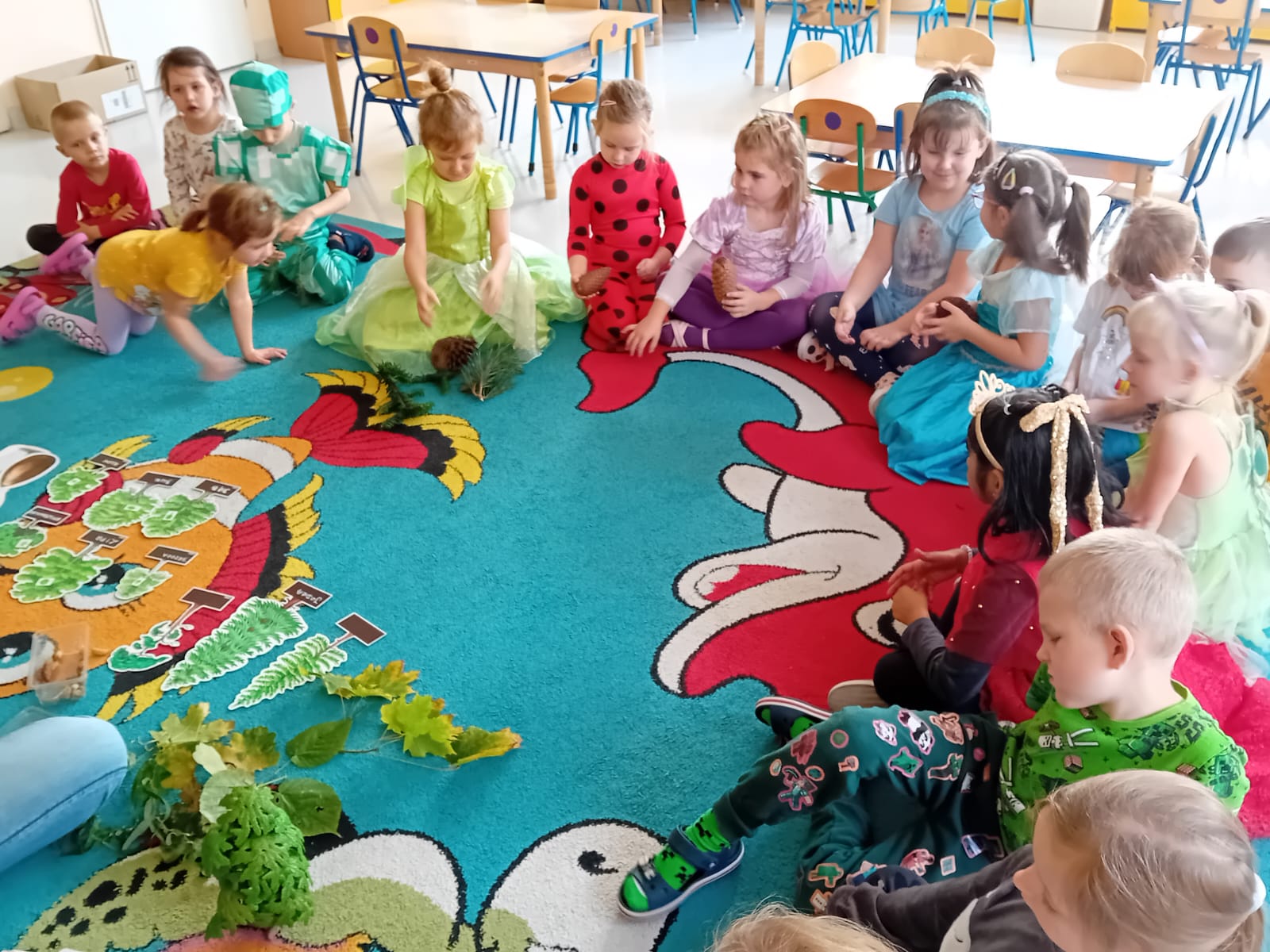 05.11.25 r. Dzieci z wszystkich grup przedszkolnych brały udział w ciekawych warsztatach przyrodniczych , pt. „Między nami drzewami – poznajemy bliżej nasze drzewa” . Przedszkolaki dowiedziały się czym różnią się drzewa iglaste od liściastych, jak są zbudowane, z czego wyrastają i jakie dają owoce. Przy pomocy zmysłów dotyku, węchu i wzroku poznały: drzewa, szyszki i korę oraz budowę drzewa od środka, nauczyły się również sposobu liczenia wieku drzew. Dzieci zwiększyły swoją wiedzę i świadomość na temat tego, jak ważne i potrzebne są drzewa dla ludzi i zwierząt.