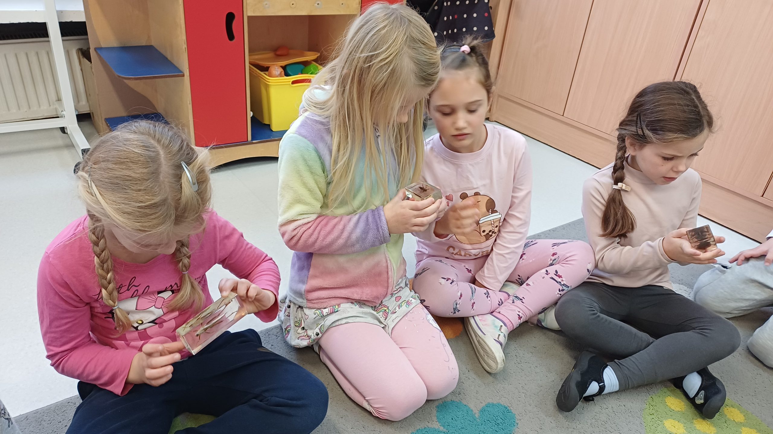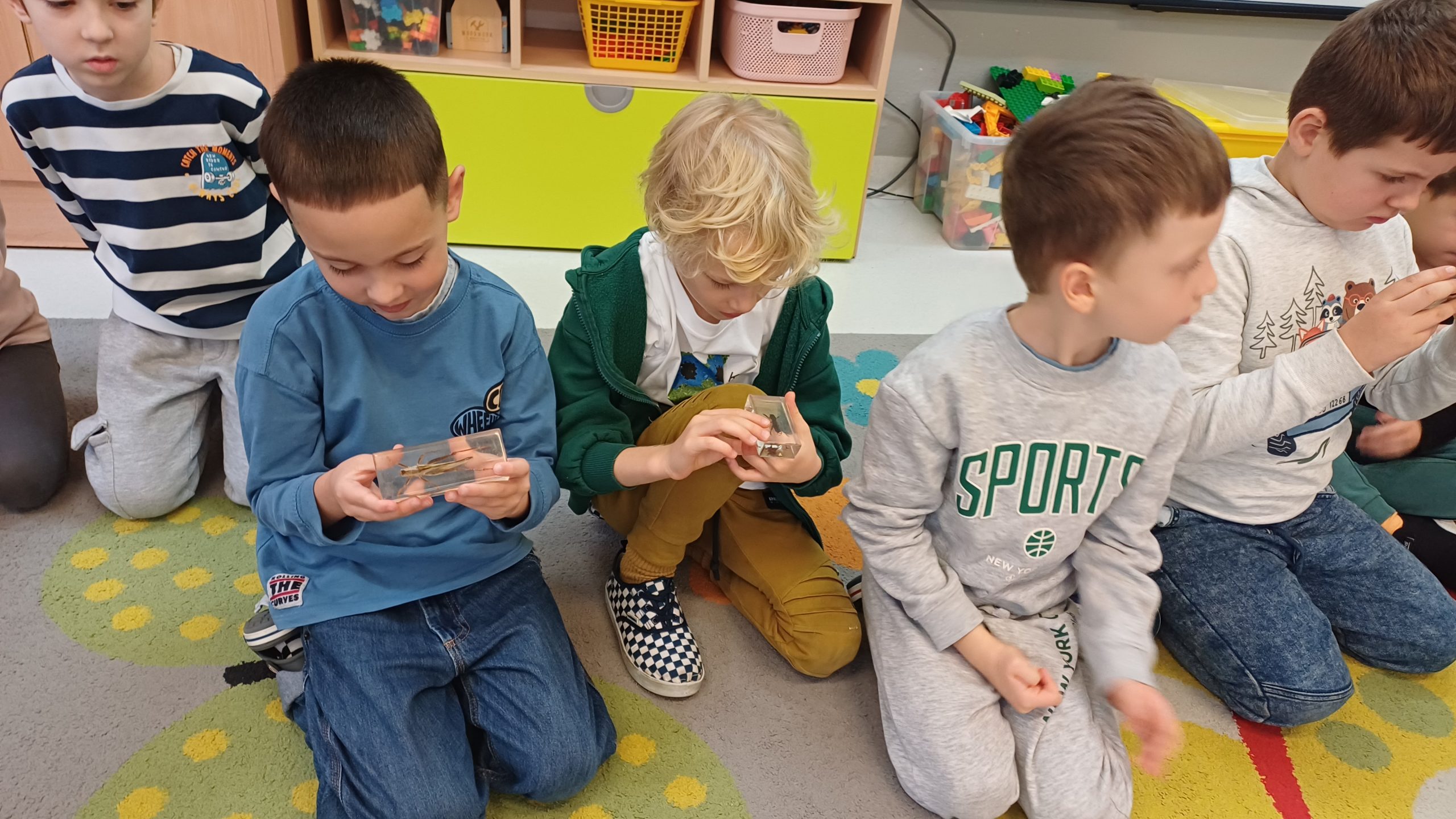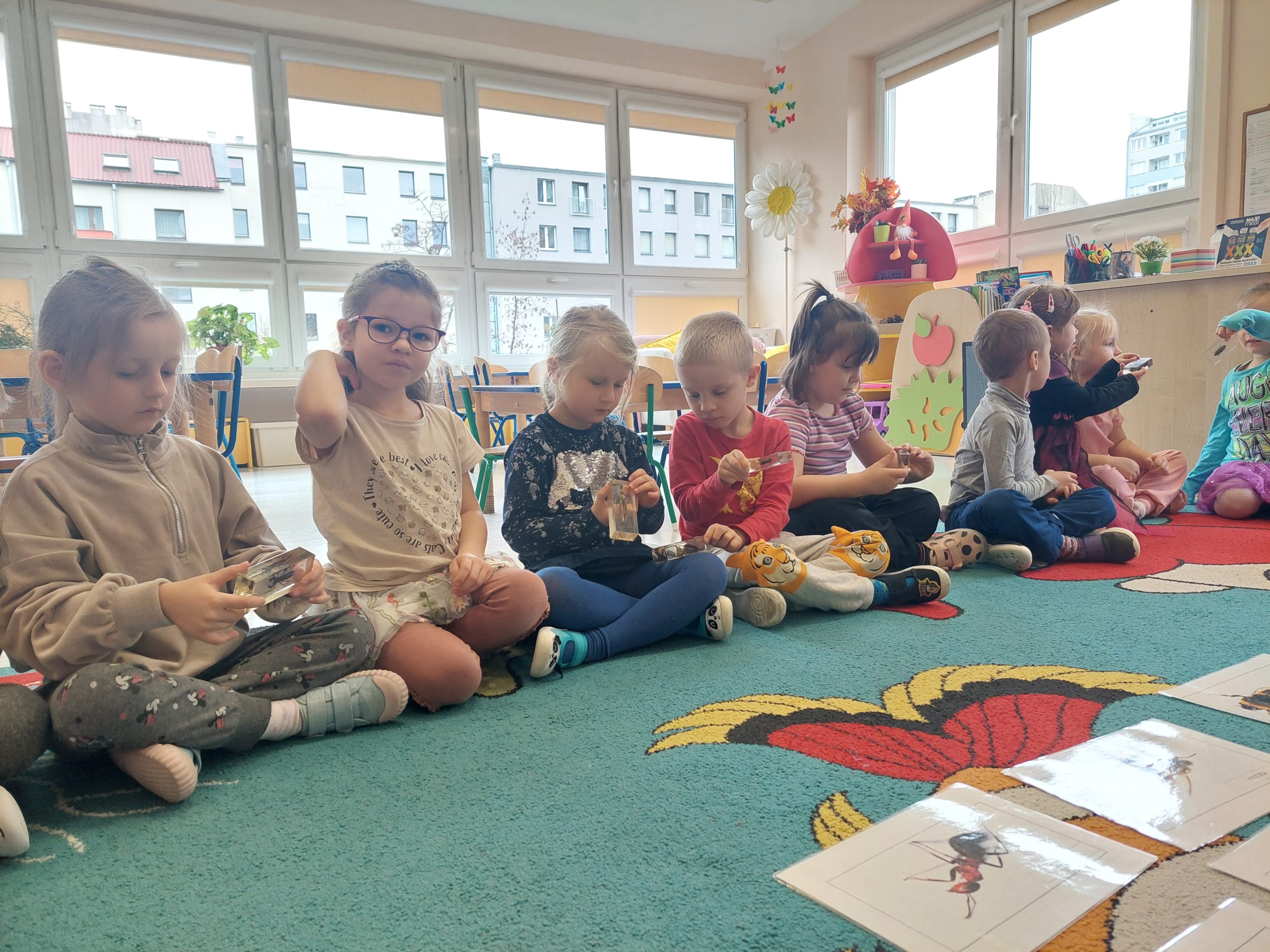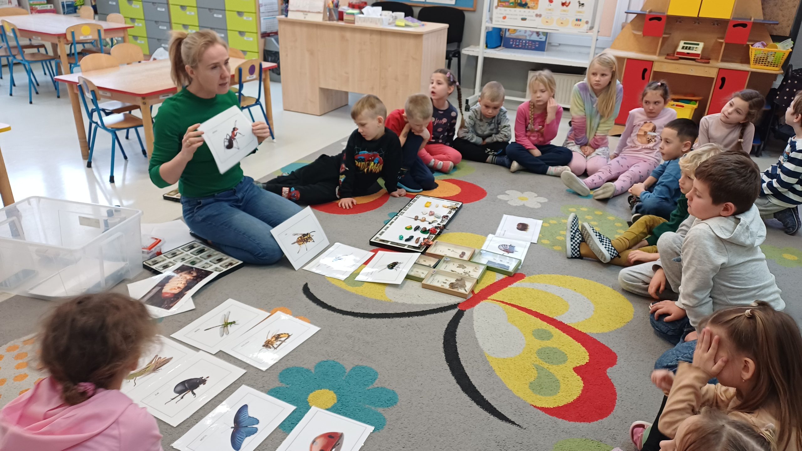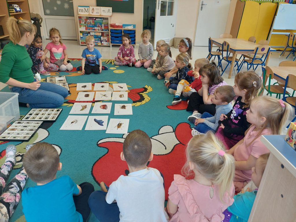 W trakcie tych zajęć pani prowadząca omówiła rożne gatunki owadów wyjaśniał, jak żyją, czym się odżywiają. Dzieci miały okazję obejrzeć różne gatunki zatopione w żywicy. Uczestnicy poznali najpopularniejsze gatunki rodzimych owadów i dowiedzieli się, jak ogromną rolę pełnią w środowisku. Dzieci poznały budowę owadów na różnym etapie ich życia, a także o to dlaczego są przyrodzie niezbędne. Warsztaty pokazały, że owady – choć często niedostrzegane – odgrywają kluczową rolę w naszym życiu i zasługują na uwagę oraz ochronę. Pani zwróciła szczególną uwagę, że owady to nie robale. Przedszkolaki dowiedziały się między innymi, ile nóg mają wszystkie owady, czym różnią się koniki polne (szarańcza), świerszcze i pasikoniki. Jak się okazało nie są ona ani takie straszne, ani obrzydliwe jak nam się wydawało. To było bardzo ciekawe spotkanie.