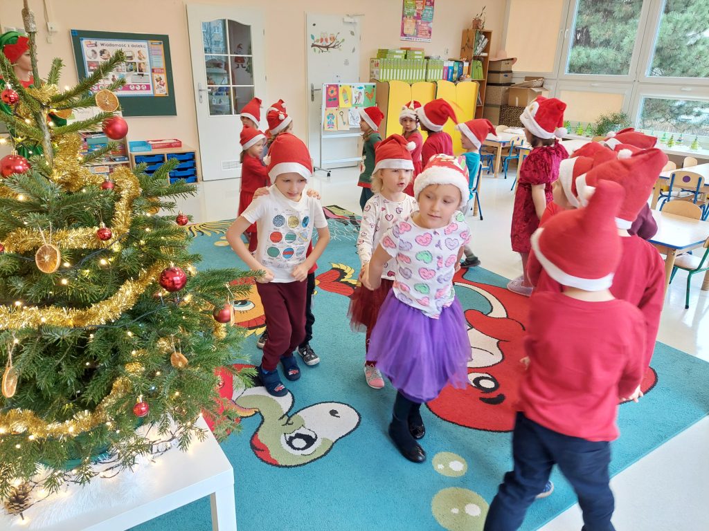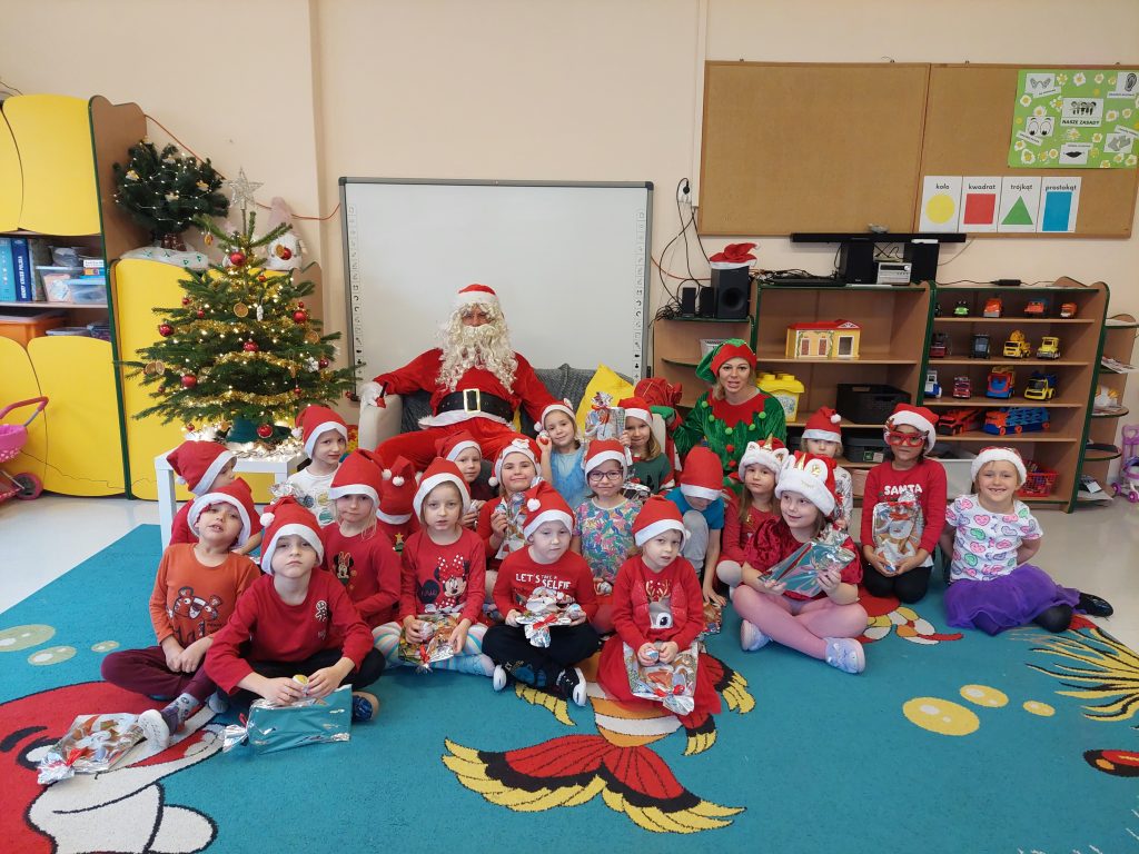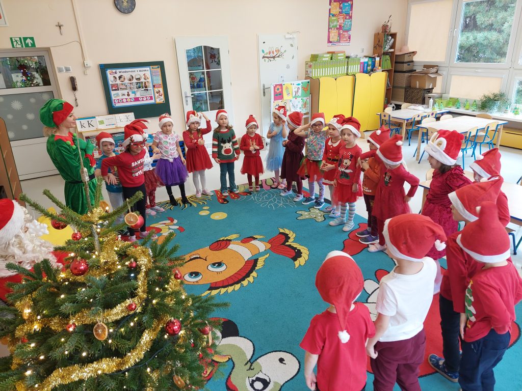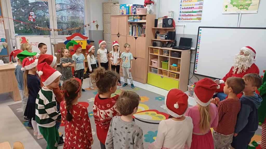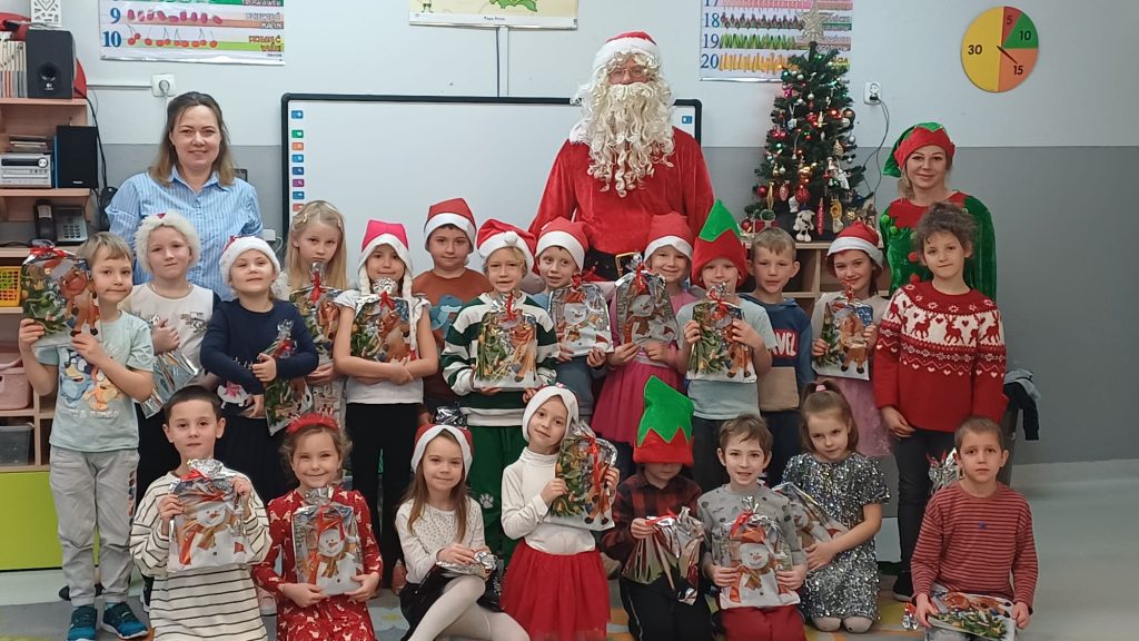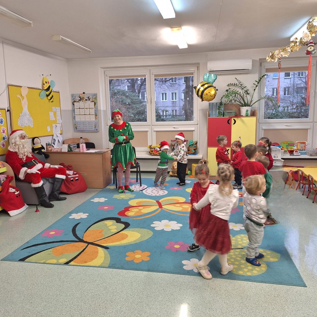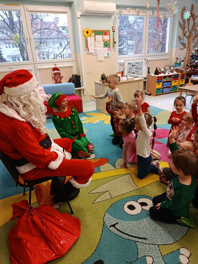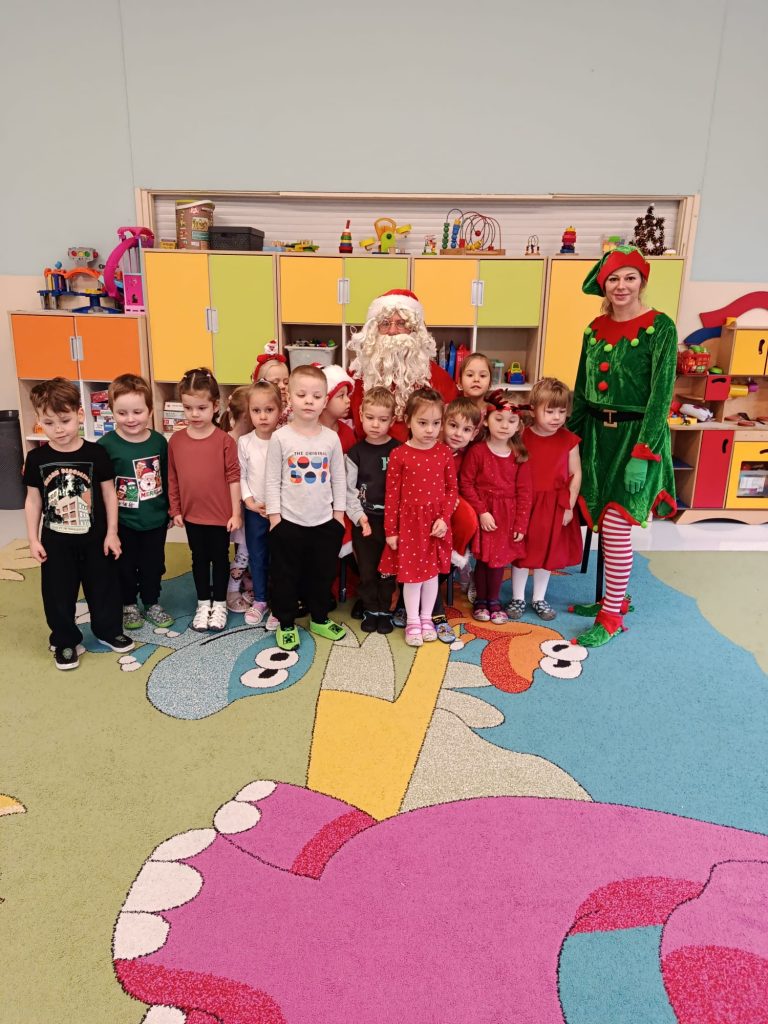 Piątek ( 05.12.2025r.) w naszym przedszkolu był dniem wyjątkowym i pełnym magii! Od samego rana dzieci z niecierpliwością wypatrywały niezwykłych gości… I w końcu pojawił się On – prawdziwy Mikołaj, w towarzystwie swojego wesołego Elfa! Przedszkolaki przywitały ich śpiewem i tańcem, prezentując swoje ulubione świąteczne piosenki. Mikołaj z radością słuchał występów, a Elf dodawał dzieciom otuchy swoim przemiłym uśmiechem i żartami. Po części artystycznej każde dziecko miało możliwość zrobić sobie pamiątkowe zdjęcie z Mikołajem. Uśmiechnięte buzie i błyszczące oczy przedszkolaków najlepiej pokazały, jak wiele radości przyniosła im ta wyjątkowa chwila. W salach panowała atmosfera pełna ciepła, uśmiechu i zimowej radości. To był dzień, który na długo pozostanie w pamięci naszych przedszkolaków.