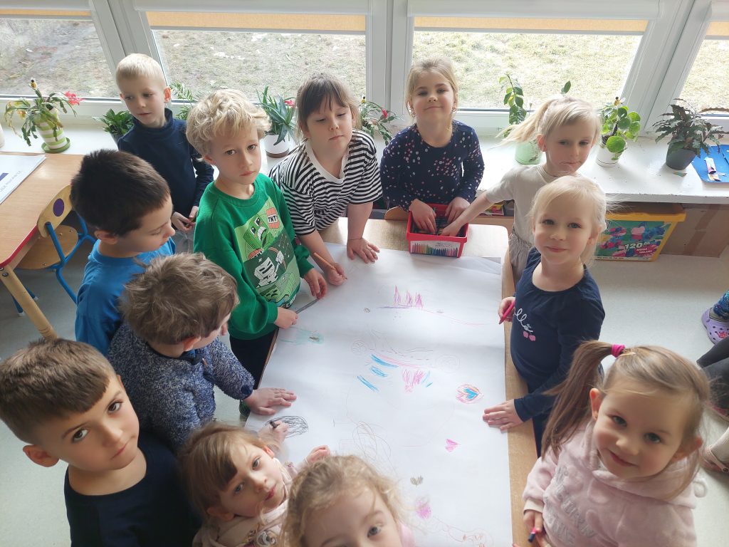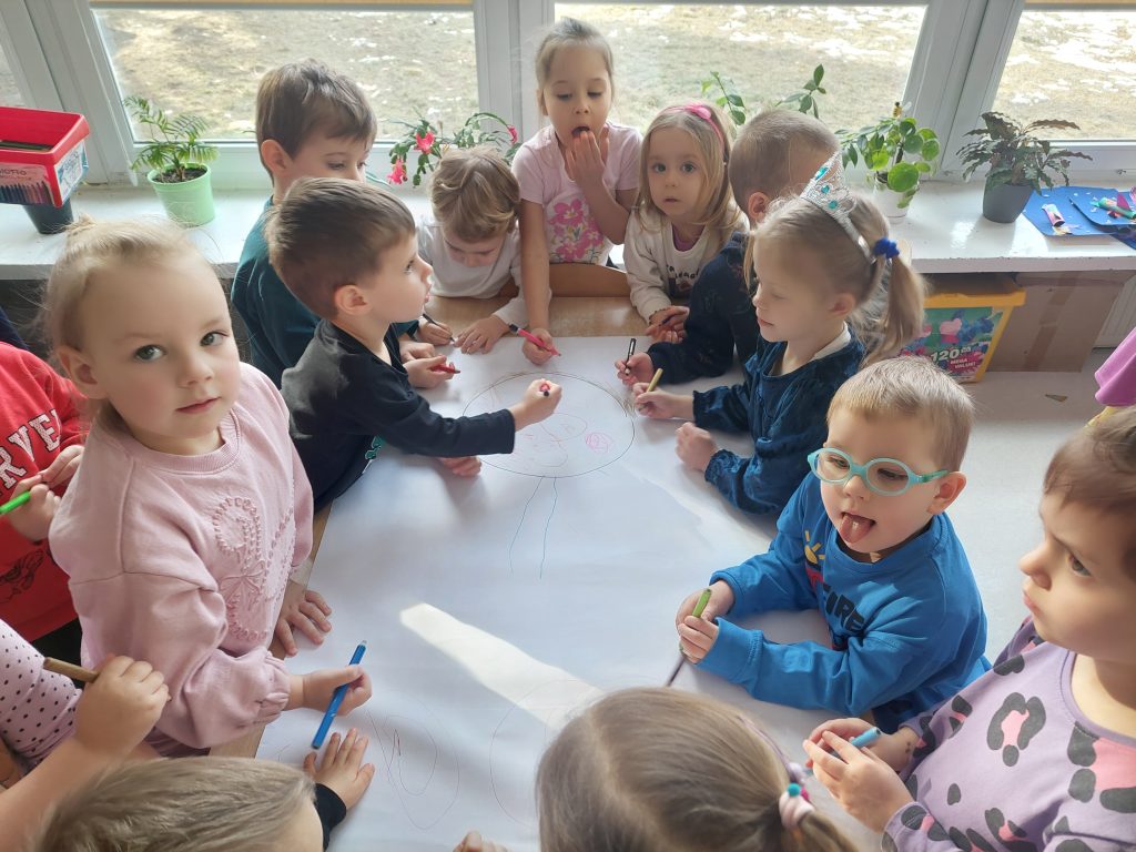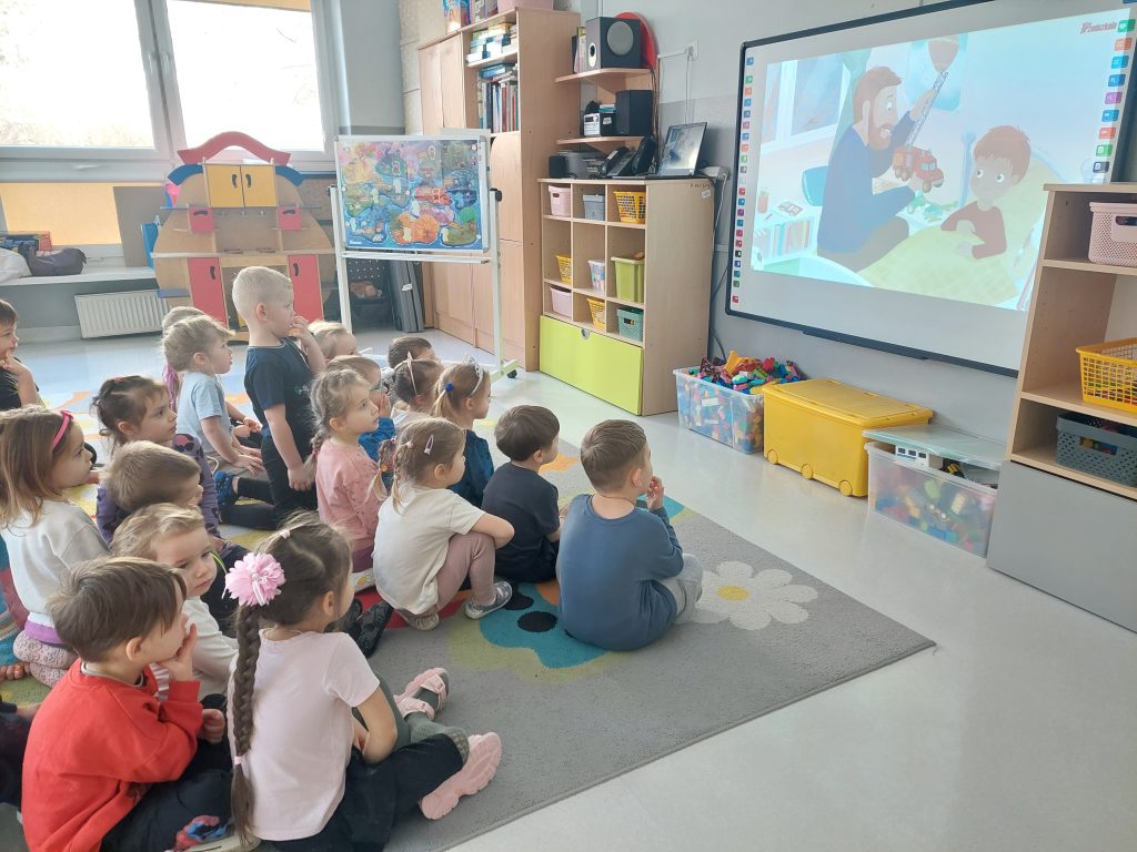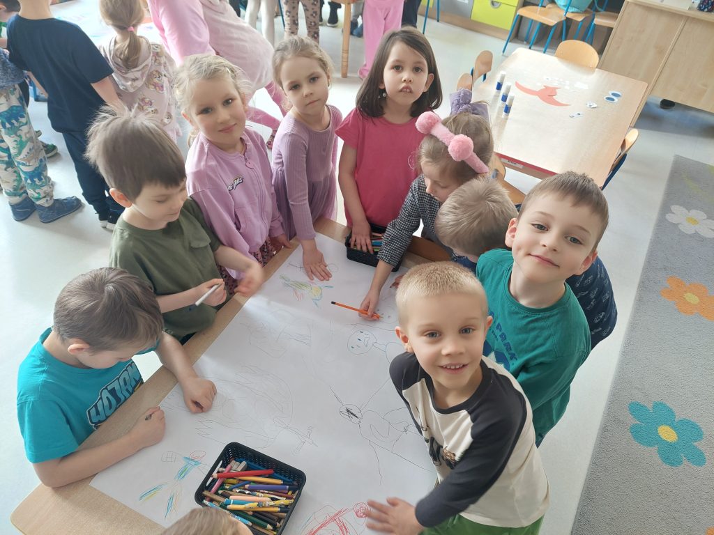 Dnia 19.02.2026r. wszystkie grupy przedszkolne wzięły udział w spotkaniu w ramach projektu „Czuciaki z Krainy Emocji”, na którym poznały kolejnego bohatera – Bojka z wyspy Strachu. Na zajęciach dzieci dowiedziały się jaką rolę w naszym życiu odgrywa strach oraz dlaczego jest on nam potrzebny. Podczas zabaw z chustkami sensorycznymi przedszkolaki wyrażały ruchem różne emocje, a przy pomocy zabawy plastycznej poznawały różne sposoby radzenia sobie ze strachem.