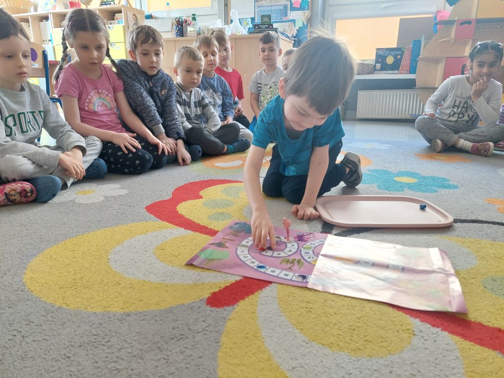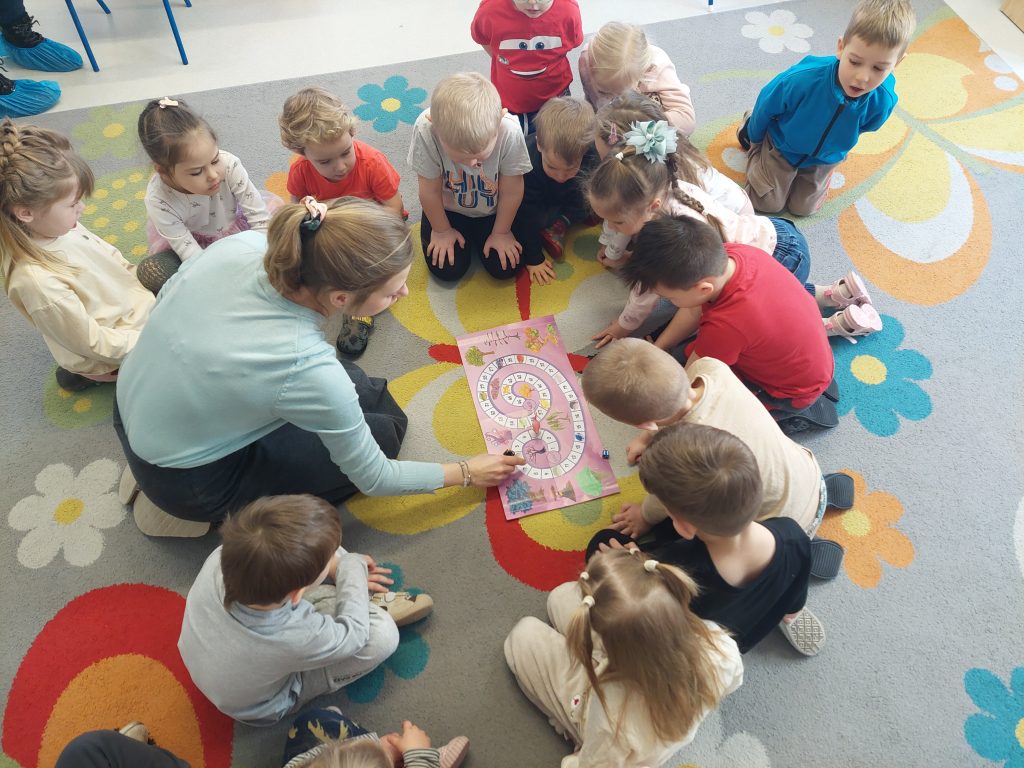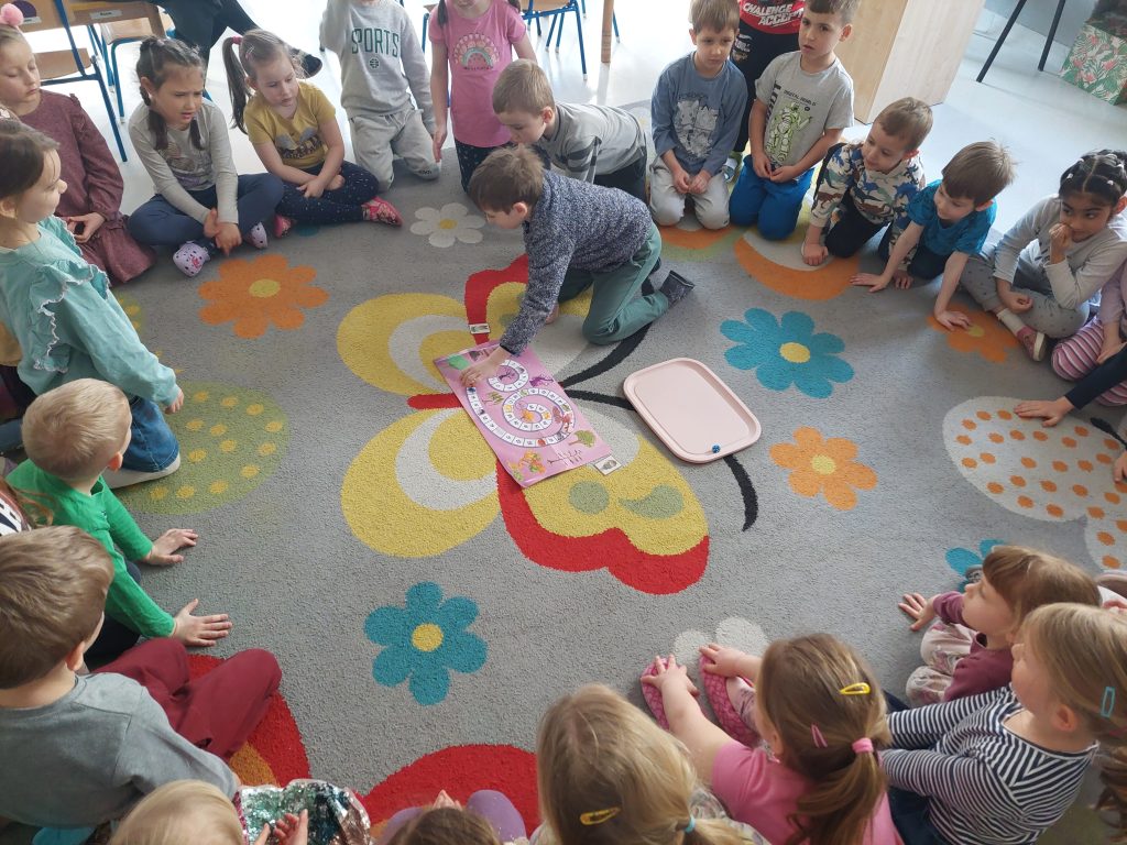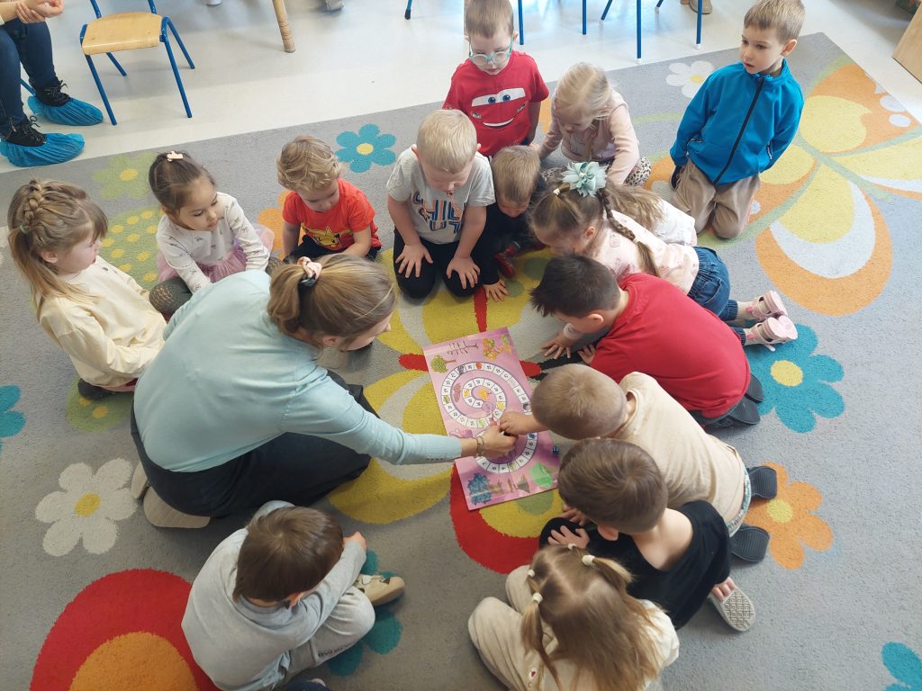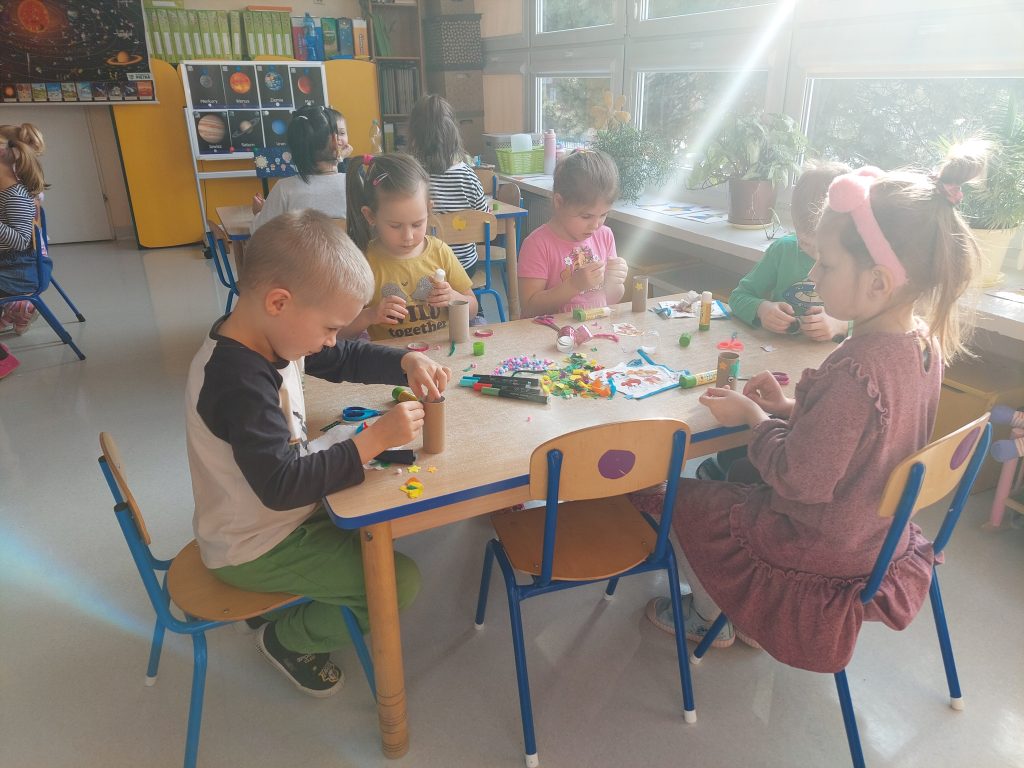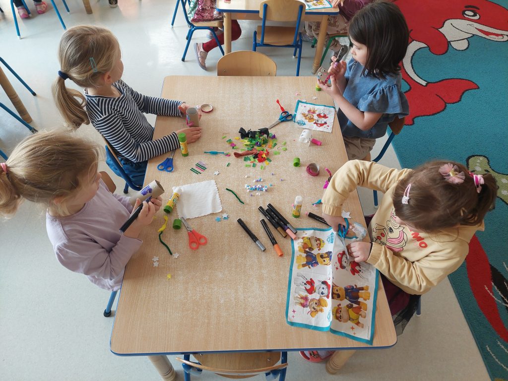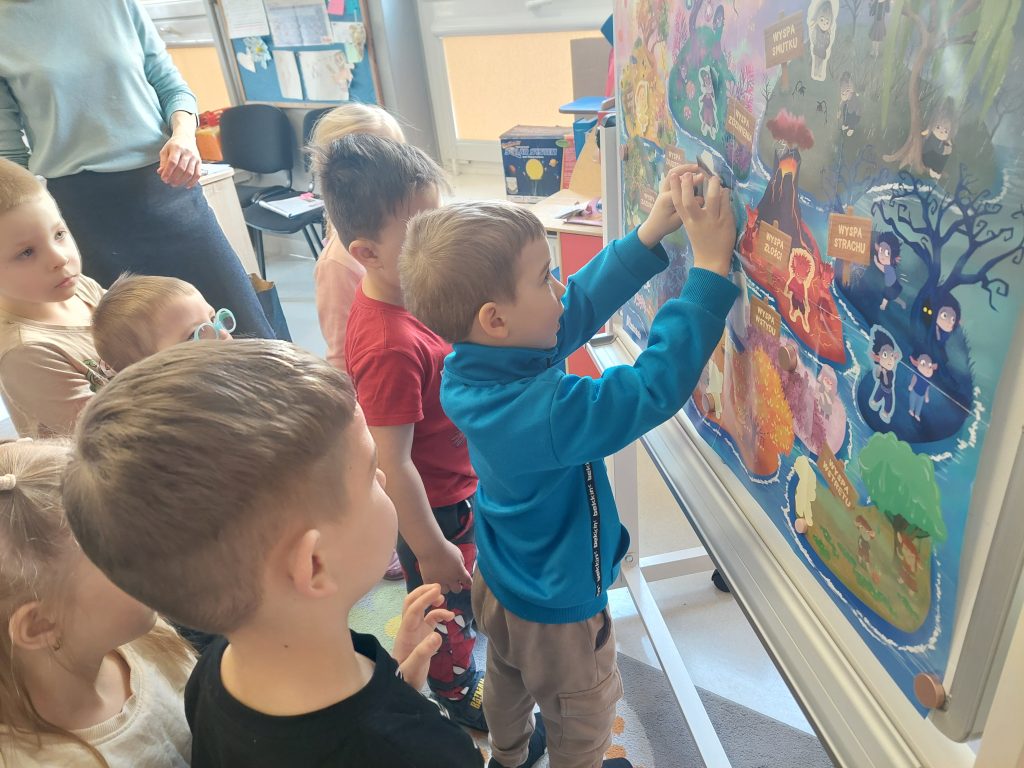 Dnia 20.02.2026r. odbyło się kolejne spotkanie w ramach projektu „Czuciaki z Krainy Emocji”, na którym przedszkolaki poznały Nudka z wyspy znudzenia. Podczas spotkania dzieci dowiedziały się w jaki sposób nuda wyzwala w nas kreatywność, wzięły udział w „nudnej” zabawie ruchowej oraz grały w grę planszową, podczas której przypomniały sobie dotychczas poznane Czuciaki. Na koniec spotkania wszystkie przedszkolaki z rolek po papierze oraz różnorodnych materiałów plastycznych wykonały fantastyczne prace plastyczne.