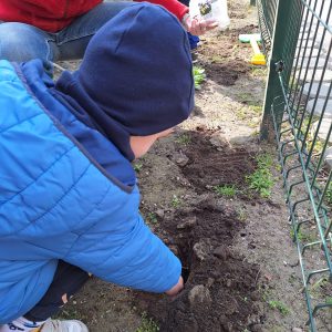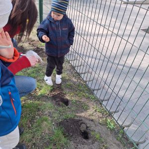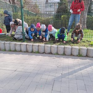 We wtorek (24.03.26r.) w naszym przedszkolu zrobiło się wyjątkowo wiosennie. Dzieci z najmłodszej grupy „Pszczółki” z wielkim zaangażowaniem sadziły cebulki wiosennych kwiatów. Było to dla nich nowe i bardzo ciekawe doświadczenie! Maluchy uczyły się, jak przygotować ziemię, gdzie umieścić cebulkę oraz jak delikatnie ją podlać. Podczas zajęć dzieci dowiedziały się, czego rośliny potrzebują, aby rosnąć, a przede wszystkim świetnie się bawiły, wcielając się w rolę małych ogrodników. Teraz z niecierpliwością będziemy wspólnie obserwować, jak z naszych cebulek wyrastają pierwsze zielone listki, a z czasem piękne, wiosenne kwiaty.